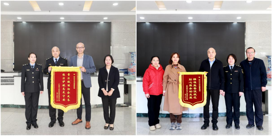 近日,广西壮族自治区柳州市市场监管局收到广西桂中大药房连锁有限责任公司、国药控股国大药房广西连锁有限公司赠送的锦旗。这不仅是荣誉,更是该局以监管为民为己任,在助企服务活动中展现服务温度、护航发展的生动缩影。