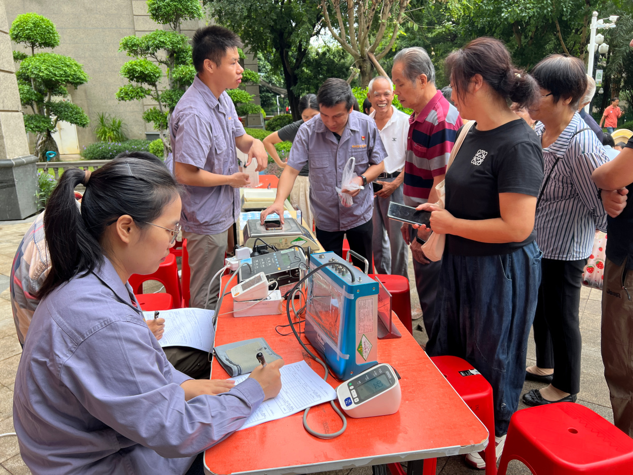 活动现场设置了血压计精度检测、眼镜光学指标校验等多个便民服务项目。技术人员不仅为居民提供免费检测服务,还通过现场演示详细讲解家用计量器具的正确使用方法和维护要点,确保大家用得安心、用得准确。