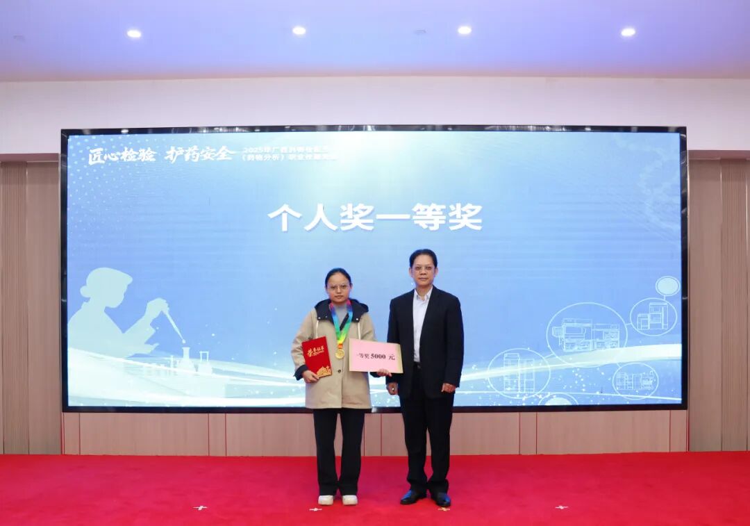 11月26日,2025年广西药物检验员(药物分析)职业技能竞赛在南宁落下帷幕。柳州市质量检验检测研究中心(以下简称“市质检中心”)代表队凭借出色的团队协作、精湛的技术水平,从众多参赛队伍中脱颖而出,斩获团体二等奖和个人一等奖,展现了柳州在药品检验领域的强劲实力。