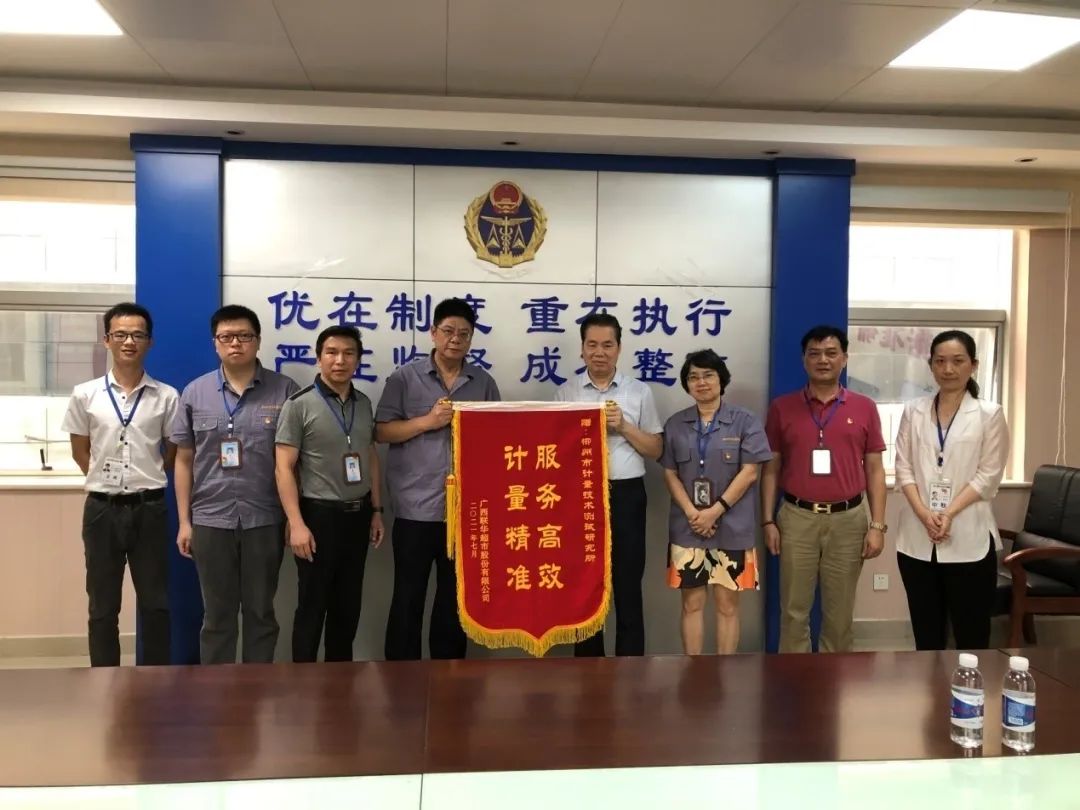 此次检定工作,得到了广西联华超市的高度赞誉,企业向柳州市计量所赠送了一面“计量精准 服务高效”的锦旗,对其高效服务企业、为企业办实事的工作作风表示感谢。